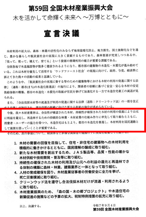 (全国木材産業大会の決議文)