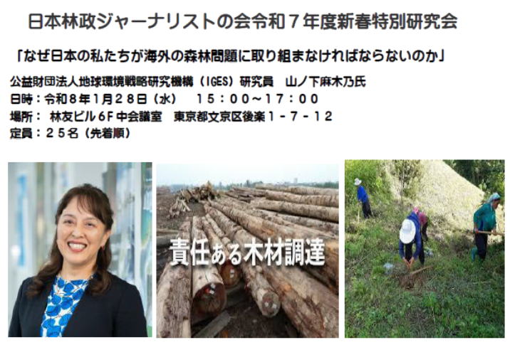 | なぜ日本の私たちが海外の森林問題に取り組まなければならないのか-林政ジャーナリストの会新春講演会予告(2025/12/3) | |