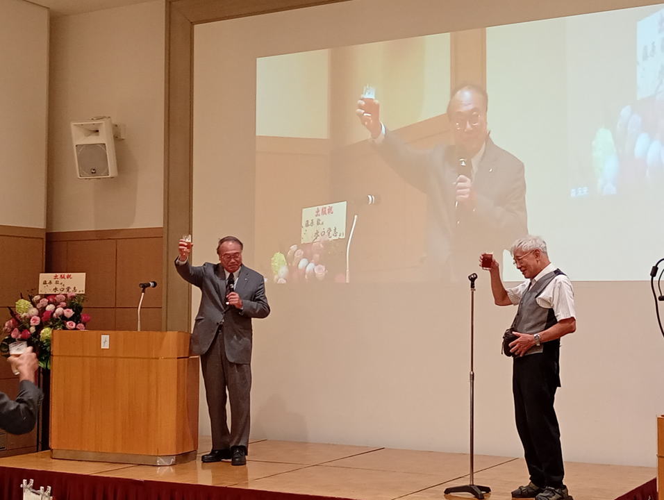 今日は私の仕事は乾杯の音頭ですので、藤原さんの終生のテーマは、環境ガバナンスの確立、そして、日本の木材利用への提言ということで、非常に志の高いご著書を、本日、出版記念でお祝いすることになっているわけですけど。世界の持続可能性だけじゃなくてですね、ご自分の、ご自分の健康のサステナビリティも、しっかり考えていただいて、勉強ばかりだけじゃなくて、たまにはまあ、気分転換して、体を休みながらですね、長く、私どもと一緒に、森林のこと勉強していただきたいので、そういう意味で藤原さんのご健康と、それから皆さんの、学問、問題意識が深まることを祈念してで、乾杯したいという風に思います。どうぞご唱和ください。それでは、皆様の健康と、それから学問と問題意識のために乾杯 |