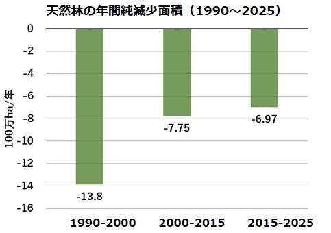 森林面積の純減速度は1990年代から半減 |