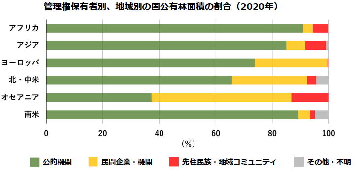 世界の森林の大部分は国公有林 |