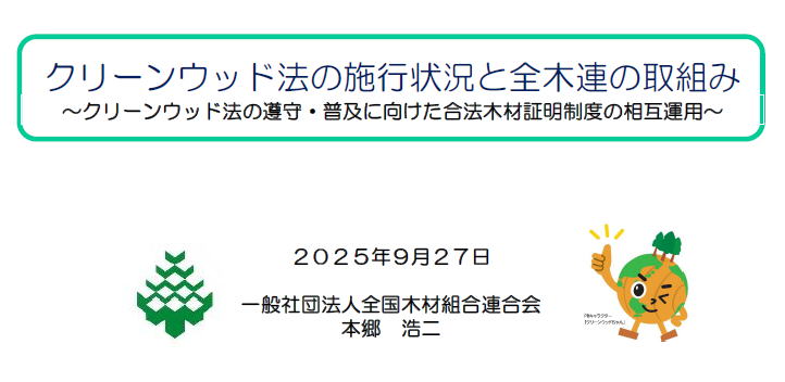(1)先の全国木材産業振興大会でも「クリーンウッド法を遵守し合法伐採木材だけが流通・利用されるよう取り組む」ことを決議