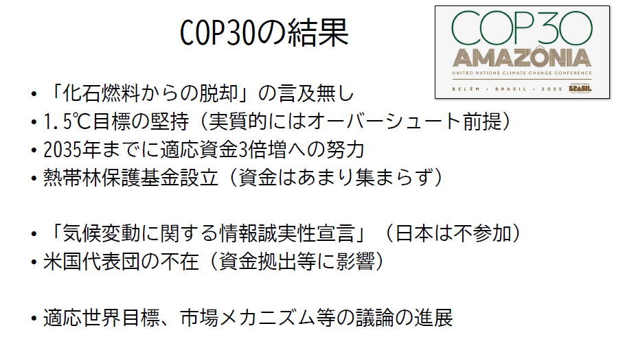 | 地球温暖化と我々の未来__ブラジルアマゾンでのCOP30の結果を踏まえてー森林関係者への期待ー勉強部屋Zoomセミナー第4回報告(2025/12/30) | ||||||||||||||||||||||||||