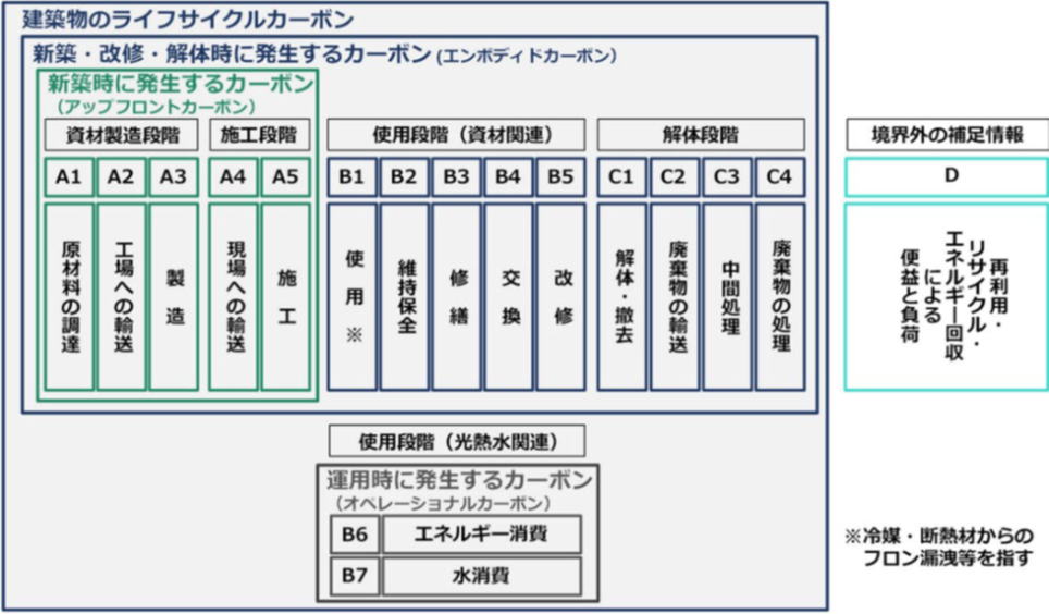 環境に関心をもってきた建築関係者が一番気にしている、「新築・改修・解体時に発生するカーボン」のことをエンボディドカーボンという(とガイドラインp14右の図に書いてありますが解体時も含むって本当?-それはそれとして)とされています。