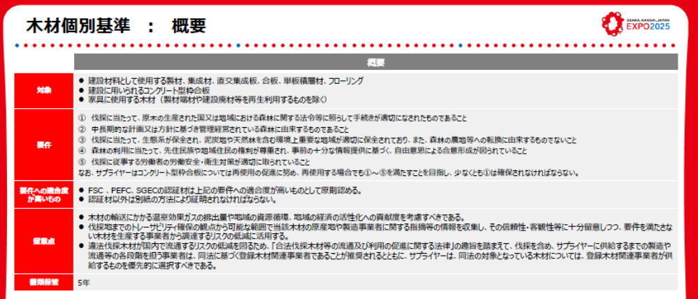 ーーーー 合法木材ならば持続可能な木材? 伐採跡地に再造林がされる、という重要なコンセプトについて、ガバンスのやり方を改善する、といった積極的なご意見でしたが、 もう一度万博の木材調達コードを見てみましょう